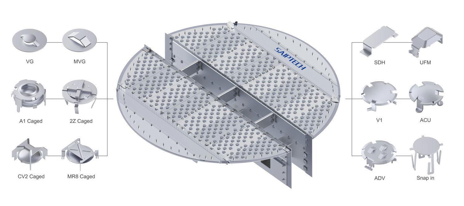 With our technical expertise in design, manufacturing, and installation, a well designed valve tray generally provides the most economically attractive solution for grassroots column construction projects. Valve trays combine high capacity and excellent efficiency with a wide operating range. Using proprietary design techniques and wide range of valve types available for valve trays, design engineers at Saiptech can assist you in optimizing performance for your application.